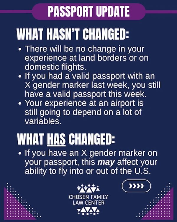 If you don’t have an X gender marker on your passport, this is a “yikes” moment in the systematic removal of the recognition of trans people’s existence by the systems of the state, but doesn’t practically impact your ability to travel.